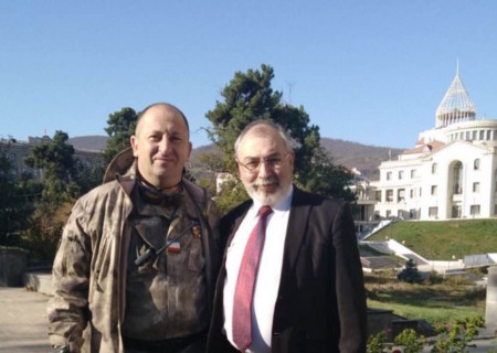 На фото Айк Бабуханян с руководителем ополчения Крыма Арменом Мартояном (позывной Самвел) в Степанакерте в дни войны.