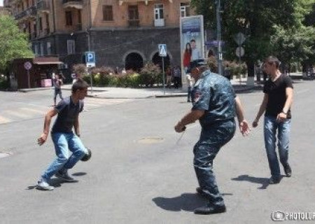 Ակտիվիստներն ու ոստիկանները ֆուտբոլ են խաղում (Photo)