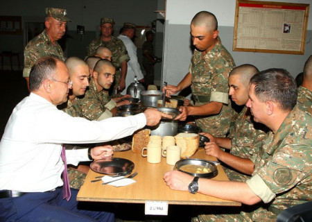 Աշխատանքային այցն ավարտվել է զորամասի ճաշարանի սանիտարահիգիենիկ պայմանների և զինծառայողների սննդակարգի ստուգմամբ: Պաշտպանության նախարարը ջերմ ու անկաշկանդ մթնոլորտում զրուցել և ճաշել է նորակոչիկ զինվորների հետ, հետաքրքրվել է զինծառայության մասին նրանց պատկերացումներով: