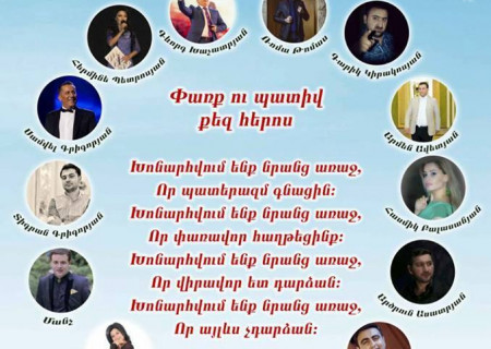 Համերգին մասնակցելու են մի շարք հայտնի դեմքեր՝ Ռուզաննա Ավետիքյանը, Սամվել Գրիգորյանը, Արծրուն Ասատրյանը, Արման Խաչատրյանը, Կարեն Առաքելյանը, Գառնիկ Գրիգորյանը, Ավո Ադամյանը, Արման Մարդարյանը, Հասմիկ Բալասանյանը, Արման Ավետյանը, Մանչը, Արմեն Ավանեսյանը, Գարիկ Կիրակոսյանը, Տիգրան Գրիգորյանը, Հերմինե Պետրոսյանը և այլք: