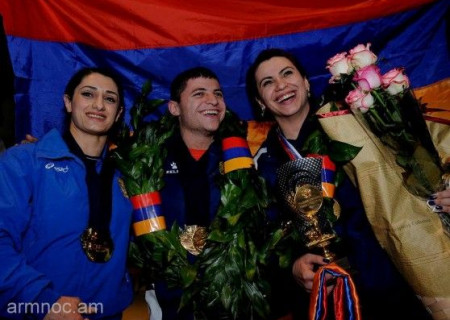 Հայաստանի ծանրամարտի տղամարդկանց և կանանց հավաքականները մեդալների ավարով վերադարձան հայրենիք: Եվրոպայի առաջնության չեմպիոններին և մեդալակիրներին դափնեպսակներով են դիմավորել «Զվարթնոց» օդանավակայանում, շնորհավորել և մաղթել նորանոր հաջողություններ գալիք օլիմպիական խաղերում: Մարզիկները կիսվել են տպավորություններով` չմոռանալով նշել, որ հաղթել են առաջին հերթին հանուն հայրենիքի ընկած և կռվող զինվորների: