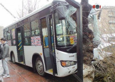 Երեւանի Կոմիտասի պողոտայում, Դայանա խանութից մի քիչ ներքեւ, ժամը 15.00-ի սահմաններում ավտոբուսը բախվել է ծառին: