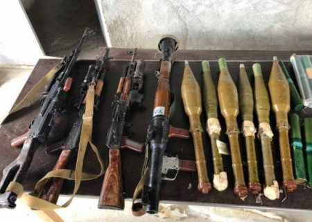 Խուզարկության արդյունքում հայտնաբերվել են ԱԿ-74 տեսակի 2 ինքնաձիգ, գնդացիր, նռնականետ, հակատանկային նռնակներ, պահունակներ, մեծ թվով փամփուշտ և այլ ռազմամթերք։ Հանգամանքները պարզվում են։ Կատարվում է նախաքննություն։