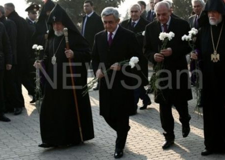 ՀՀ Նախագահ Սերժ Սարգսյանը և ԼՂՀ Նախագահ Բակո Սահակյանը Հայոց բանակի կազմավորման 23-րդ տարեդարձի առթիվ այցելել են «Եռաբլուր» պանթեոն՝ հարգանքի տուրք մատուցելու Արցախյան պատերազմի և ադրբեջանական դիվերսիաների ժամանակ զոհվածներին:
