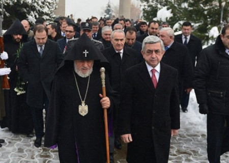 ՀՀ և ԼՂՀ նախագահները, Գարեգին Բ–ն և կառավարության անդամները Բանակի օրվա առթիվ այցելել են Եռաբլուր