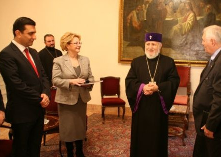 Ն.Ս.Օ.Տ.Տ. Գարեգին Բ Ծայրագույն Պատրիարք և Ամենայն Հայոց Կաթողիկոսը Մայր Աթոռ Սուրբ Էջմիածնում այսօր ընդունել է ՌԴ Առողջապահության նախարար Վերոնիկա Սկվորցովայի գլխավորած պատվիրակությանը` ուղեկցությամբ ՀՀ Առողջապահության նախարար Արմեն Մուրադյանի: