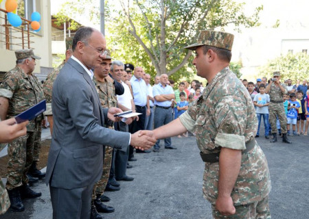 Շնորհավորելով բնակարանամուտի բերկրանք ապրող զինծառայողներին ու նրանց ընտանիքների անդամներին` Սեյրան Օհանյանը անձամբ է նրանց հանձնել բնակարանների բանալիներն ու վկայագրերը: Պաշտպանական գերատեսչության ղեկավարը հավաստիացրել է, որ զինծառայողների համար շինարարական արդի չափանիշներին համապատասխանող բնակարանային պայմանների ապահովումը մշտապես գտնվում է պետության հոգածության ներքո, և ամեն ինչ արվում է, որ ծանրաբեռնված օրակարգից հետո լարվածությունն ու հոգնածությունը թոթափելու համար յուրաքանչյուր սպա ունենա իր ջերմ անկյունը:
