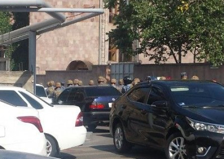 Երեւանի Խորենացի փողոցում, որտեղ նախօրեին զինված ծումբը գրավել էր ոստիկանության ՊՊԾ գունդը, այս պահին լարված իրավիճակ է: