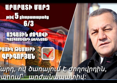 Արարատի մարզ, թիվ 5 ընտրատարածք , ԱԺ պատգամավորի թեկնածու Արայիկ Թեմուրի Գրիգորյան: