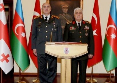 Թուրքիայում: Պաշտոնական այցի ընթացքում եռակողմ հանդիպում է կայացել Վրաստանի Զինված ուժերի Գլխավոր Շտաբի պետի, Ադրբեջանի Պաշտպանության նախարարի և Թուրքիայի Զինված ուժերի Գլխավոր Շտաբի պետի միջև: Կայացած հանդիպումը երեք երկրների պաշտպանության հարցերով նախարարականի շարունակությունն է, որը տեղի է ունեցել Թբիլիսիում: Կողմերը պայմանավորվել են խորացնել հարաբերությունները ռազմական բնագավառում: Հանդիպման ընթացքում քննարկվել են տարածաշրջանային անվտանգության հարցեր: Հատկապես քննարկվել է երեք երկրների զինված ուժերի ամրացման հարցը, տարածաշրջանում կայունություն և անվտանգություն հաստատելու համար: Հանդիպման ավարտին կողմերը ստորագրել են համատեղ արձանագրություն», -հայտնում է Վրաստանի Պաշտպանության