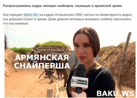 Իսկ ահա ադրբեջանական կայքերից մեկը գրել է, որ ինչպես երևում է իտալական հեռուստաընկերության կադրերում՝ աղջիկը ծառայում է դիրքերում և նույնիսկ հարցազրույցի ժամանակ դիպուկահար կինը/ այդպես է Նազենի Հովհաննիսյանիններկայացրել ադրբեջանական կայքը/ չի թաքցրել, որ ինքը վարձու զինվոր է: