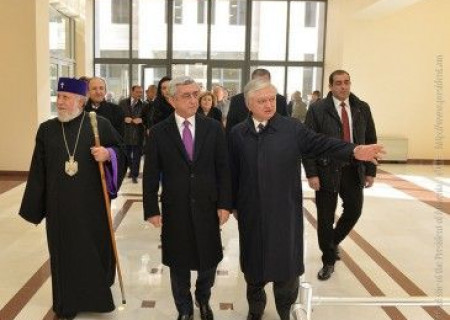 Նախագահ Սերժ Սարգսյանն այսօր մայրաքաղաքում ներկա է գտնվել նորակառույց կառավարական վարչական համալիրի բացմանը՝ Վազգեն Սարգսյան 3 հասցեում, որի շինարարության մեկնարկից՝ 2013թ. ապրիլից ի վեր, Հանրապետության Նախագահըպարբերաբար այցելել և հետևել է աշխատանքների ընթացքին: