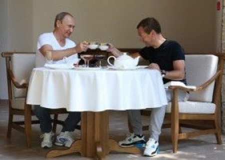 Նախաճաշի ընթացքում, որն ավարտվել է թեյախմությամբ, Պուտինը և Մեդվեդևը քննարկել են արդիական հարցեր:
