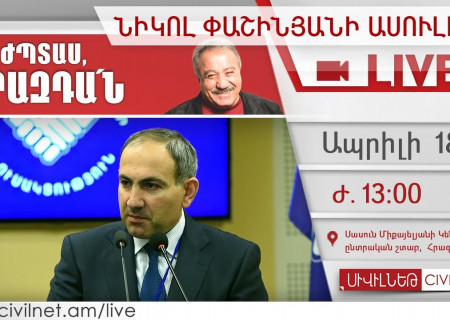 Քաղաքապետի թեկնածու Սասուն Միքայելյանի նախընտրական շտաբի պետ Նիկոլ Փաշինյանը ասուլիս է հրավիրել, որը ներկայացնում ենք ուղիղ հեռարձակմամբ: