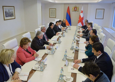 Նախագահ Սերժ Սարգսյանը Վրաստան աշխատանքային այցի շրջանակներում այսօր Թբիլիսիում հանդիպում է ունեցել երկրի վարչապետ Իրակլի Ղարիբաշվիլիի հետ: