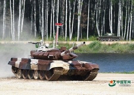 Տանկային բիաթլոն 2015 մրցույթին մասնակցող ՀՀ ԶՈւ 1-ին տանկային անձնակազմի տանկը մրցման ժամանակ