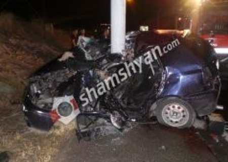 Խոշոր ավտովթար Երևանում. Ֆոլքսվագենը բախվել է էկետրասյանը, կա 2 զոհ, 2 վիրավոր