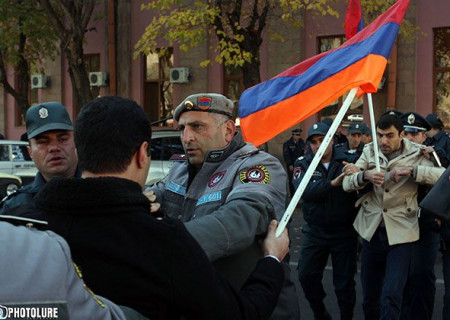Ինչպես տեղեկացրել էինք, ակցիայի մասնակիցները այսօր նախ հավաքվել էին Ֆինանսների նախարարության մոտակայքում և ցանկանում էին նամակ փոխանցել նախարարությանը, սակայն ոստիկանները նրանց այդպես էլ թույլ չտվեցին մոտենալ նախարարության շենքին: