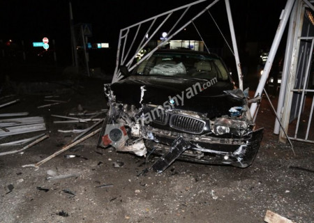«Շումախերական» վթար Երևանում. 45-ամյա վարորդը BMW-ով մխրճվել է Ճանապարհային ոստիկանության հենակետի տարածք. ՖՈՏՈ