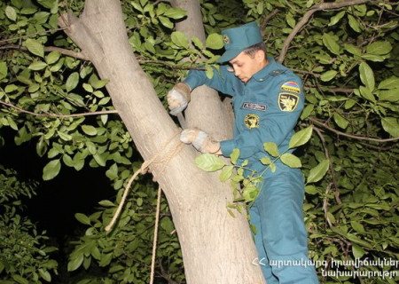 Փրկարարները ծառից իջեցրել են դին, մոտ 700 մ տեղափոխելով՝ դուրս բերել ձորից և մոտեցրել դի տեղափոխող ավտոմեքենային: