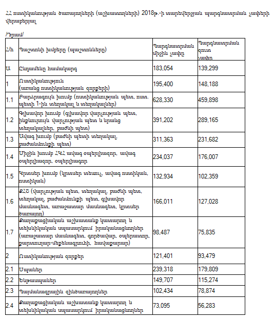 Այդ նպատակով ծախսվել է 1մլն 834 մլն դրամ՝ ներառյալ ՀՀ կառավարության 2018թ. դեկտեմբերի 18-ի թիվ 1432-Ն որոշմամբ ճանապարհային ոստիկանության արտաբյուջետային ֆոնդի տնտեսված միջոցներից հատկացված 1 մլն. դրամը: