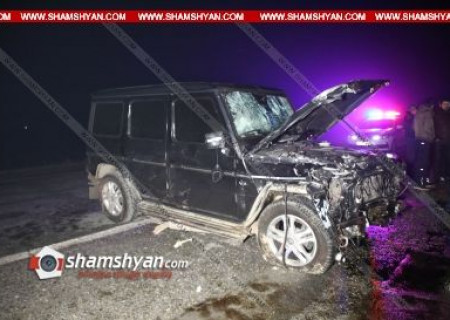 Ժամը 19:30-ի սահմաններում, Երևան-Արմավիր ավտոճանապարհի 28 կմ հատվածում, բախվել են Mercedes G-500 մակնիշի 06 DD 006 համարանիշի և ՎԱԶ-2102 մակնիշի 35 FV 550 համարանիշի ավտոմեքենաները: