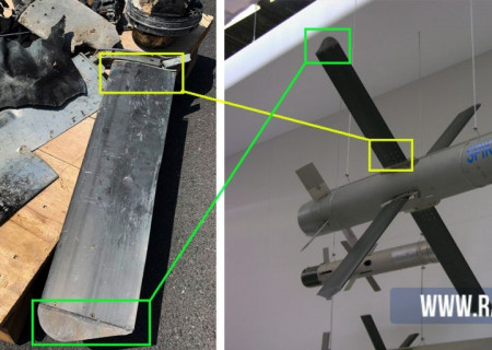 Ձախից՝ ցուցադրված բեկորը, աջից՝ Spike-NLOS հրթիռը