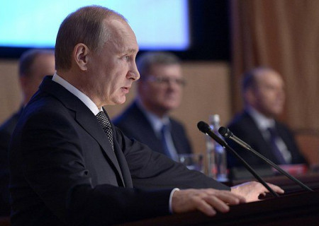 По его словам, именно за последний год мир изменился значительно - это и активизация террористов, крайне острый конфликт на Ближнем Востоке, где в боевых действиях на стороне исламистов ИГИЛ и "Аль-Каиды" воюют в том числе и выходцы из России. Это и кибер-угрозы, и давление НАТО. А с гражданской войной на Украине Россия получила и очаг нестабильности у своих границ, и потоки беженцев, и попытки контрабанды оружия. Президент перечислил успехи года - пресекли деятельность 52 кадровых разведчиков и 290 агентов спецслужб. Пресечено более 70 миллионов кибер-атак, полторы тысячи экстремистских сайтов закрыты, количество террористических вылазок сократилось в 2,5 раза.