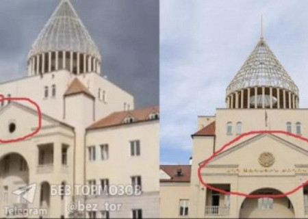Ադրբեջանցիները Արցախի ԱԺ շենքից պոկել են գերբը, քանդել են նաև «ԱՐՑԱԽԲԱՆԿԻ» հայերեն տառերը։