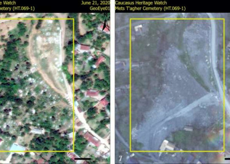 «Վերջերս ոչնչացվել է Մեծ Թաղեր գյուղի հայկական գերեզմանատունը: Այն հիմնվել է 19-րդ դարի սկզբին և գործել է մինչև այն ժամանակ, երբ հայերը տարհանվեցին գյուղից 2020 թվականին: Արբանյակային պատկերը ցույց է տալիս գերեզմանատան ամբողջական ոչնչացումը»,- ասված է գրառման մեջ: