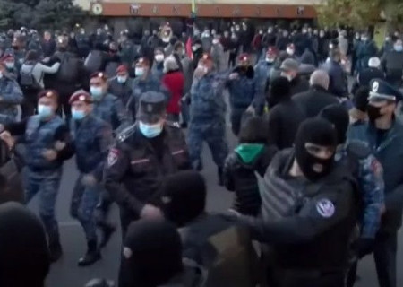 Րոպեներ առաջ դիմակավորված ուժայինները սկսեցին բերման ենթարկել «Սասնա ծռեր»-ի հանրահավաքին մասնակցող քաղաքացիներին, որի ընթացքում քաշքշոց սկսվեց ցուցարարների և ուժայինների միջև: