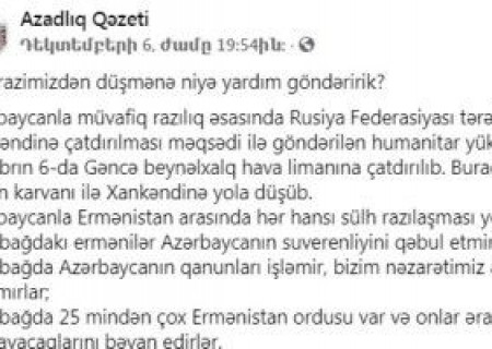 Եռակողմ հայտարարությունից դժգոհողների թիվն Ադրբեջանում շատանում է: Պայմանավորվածության շրջանակներում Ռուսաստանի Դաշնությունից Արցախ ուղևորվող հումանիտար օգնությունը դեկտեմբերի 6-ին տարվել է Ադրբեջանի տարածքով, մասնավորապես, Գանձակի օդանավակայանից այն ավտոշարասյունով տեղափոխվել է Ստեփանակերտ: «Azadliq» թերթը, մեջբերելով լրագրող Էլչին Ռուստամլիին, գրում է. «*Հայաստանի ու Ադրբեջանի միջև չկա խաղաղության պայմանագիր,