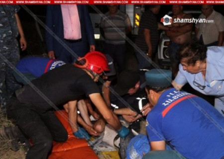 Փրկարարներն ավտոմեքենայից մոտ 200 մ հեռավորությունից 22-ամյա Լեւոն Հ.-ին եւ 32-ամյա Ռոման Հ.-ինն մոտեցրել (300 մ) են շտապօգնության ավտոմեքենաներին, որոնք հոսպիտալացվել են «Սուրբ Գրիգոր Լուսավորիչ» ԲԿ: Բժիշկները տուժածների առողջական վիճակը գնահատել են միջին ծանրության: