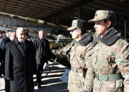 ՀՀ ԱԺ նախագահ Գալուստ Սահակյանի գլխավորած պատվիրակությունը Լեռնային Ղարաբաղի Հանրապետություն կատարած աշխատանքային այցի շրջանակում փետրվարի 12-ին այցելել է ԼՂՀ պաշտպանական բանակի տանկային զորամասերից մեկը: