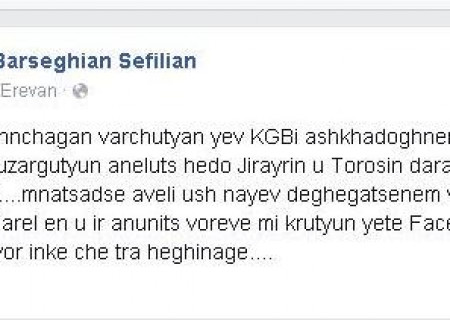Նա զգուշացնում է, որ եթե Ժիրայր Սէֆիլյանի անունից Ֆեյսբուքում գրություն լինի, իմացեք, որ հեղինակն ինքը չէ։