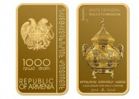 Հայաստանի Հանրապետության կենտրոնական բանկը թողարկել է Մայր Աթոռ Սուրբ Էջմիածնում պահվող Սրբալույս Մյուռոնի կաթսային նվիրված հուշադրամ: