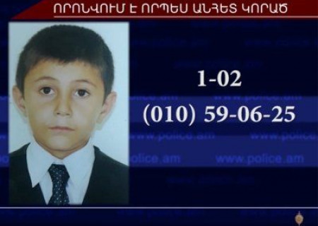 Որպես անհետ կորած որոնվող 12-ամյա Հրաչյա Բադասյանը հայտնաբերվել է