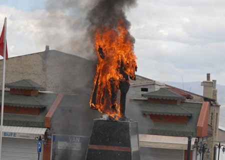 Քրդերը Վանի նահանգում այրել են Աթաթուրքի արձանը (տեսանյութ)
