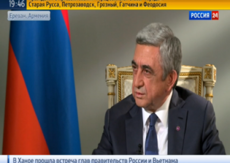 Այսօր «Россия 24 » հեռուստաընկերության ուղիղ եթերում ՀՀ նախագահ Սերժ Սարգսյանը պատասխանում էր ռուս լրագրողի հարցերին: Նախագահ Սարգսյանը խոսելով Լեռնային Ղարաբաղի հակամարտության խաղաղ կարգավորման մասին կրկին անգամ վերահաստատեց, որ ղարաբաղյան հակամրտությունը կարող է կարգավորվել ԵԱՀԿ Մինսկի խմբի ձևաչափում: