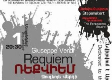 ՀՀ Նախագահի Տիկին Ռիտա Սարգսյանի բարձր հովանու ներքո և ԼՂՀ մշակույթի և երիտասարդության հարցերի նախարարության աջակցությամբ՝ սեպտեմբերի 1-ին Ստեփանակերտի Վերածննդի հրապարակում տեղի կունենա Ջուզեպե Վերդիի «Ռեքվիեմի» արցախյան պրեմիերան:
