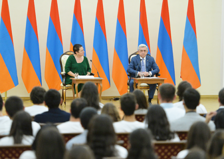 Ուզում եմ, որպեսզի ձեզնից յուրաքանչյուրը սեփական հաջողությունները պայմանավորի նաև մեր երկրի հաջողություններով: Ես շատ եմ ցանկանում, որ բոլոր այն երիտասարդները, ովքեր ունեն գիտելիքի պաշար, փորձեն իրենց անձնական հաջողությունները ունենալ Հայաստանում: Ես շատ լավ հասկանում եմ, որ բարդ խնդիր է, հասկանում եմ, որ Հայաստանում այդ բարենպաստ պայմանները դեռևս չկան, բայց մյուս կողմից՝ ուզում եմ, որ դուք շատ լավ հասկանաք՝ երբ մեր երկրում այդպիսի պայմաններ կլինեն, Հայաստանն արդեն օժանդակողների կարիք չի ունենա, իսկ մեզնից յուրաքանչյուրի պարտականությունն է՝ իր նպաստը բերել այդպիսի երկիր ունենալու գործին: Ուզում եմ մեկ անգամ ևս շնորհավորել բոլոր այն մարդկանց, ովքեր իրենց գիտելիքների շնորհիվ արժանացել են խրախուսանքի, արժանացել են օժանդակության: Ձեզ բարի երթ եմ մաղթում, և ինչպես միշտ՝ այսպիսի հանդիպումների ընթացքում ինձ համար ամենահաճելին ոչ թե ձեզ պատգամ հղելն է, այլ ձեր հարցերին պատասխանելը, որովհետև այսպիսի հանդիպումների ամենակարևոր մասը դա է: Դա հնարավորություն է տալիս տեսնելու, թե ի՞նչ խնդիրներ կան, և ո՞ր ուղղությամբ է զարգանում երիտասարդների միտքը: Ես շատ ուրախ եմ, որ հայ երիտասարդները կարողանում են ճիշտ կողմնորոշվել արագ փոփոխվող աշխարհում: