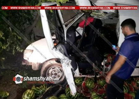 Շիրակի մարզում 23-ամյա վարորդը ձմերուկով բարձված Ford Transit-ով բախվել է հաստաբուն ծառին. նրան ավտոմեքենայից դուրս են բերել փրկարարները՝ օգտագործելով հատուկ տեխնիկա