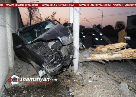 Խոշոր ու շումախերական ավտովթար Երևանում. Mercedes-ը տապալել է հաստաբուն ծառն ու բախվել է էլեկտրասյանը. վարորդը տեղափոխվել է հիվանդանոց