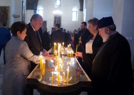 Ապրիլի 14-ին Ն.Ս.Օ.Տ.Տ. Գարեգին Բ Ծայրագույն Պատրիարք և Ամենայն Հայոց Կաթողիկոսը Մայր Աթոռ Սուրբ Էջմիածնում հանդիպեց Հայաստանի Հանրապետության նախագահ տիար Արմեն Սարգսյանի և առաջին տիկին Նունե Սարգսյանի հետ: