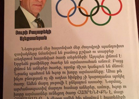 Լույս է տեսել <Մարզական լրագրողի հուշերից>անվանումով գիրքը : Վաստակաշատ մարզական լրագրողի Յուրի Ալեքսանյանի գիքը բաղկացած է 3 մասից . <Չեմպիոններ> , <Հայրենական սպորտի երախտավորներ >, <Խճանկար> : Առաջին բաժնում տեղ են գտել համաշխարհային սպորտի բարձունքները նվաճած հայ մարզիկների մասին պատմող ակնարկները , հոդվածները : Մեծ տեղ է հատկացված ոչ թե կենսագրականին , որոնց լավատեղյակ է մարզասերը , այլ չեմպիոնների բնավորությանը , նրանց կյանքի հետ կապված բազմաբովանդակ հետաքրքիր դիպվածներ : Նույնը վերաբերում է <Երախտավորներ > բաժնի հերոսներին : <Խճանկարում> դրվագներ կան լրագորղի հոդվածներից , որոնք հաստատապես ուսուցողական են ուսումնական հաստատությունների սովորողների , հատկապես՝ մարզական լրագրություն մտնող ցանկացող երիատասարդության համար : Ծավալուն այդ գործը ընթերցվում է , ինչպես ասվում է, մեկ շնչով , քանզի միտքն ու գրավոր խոսքի մատուցման բարձր կուլտուրան մատչելի է , ընթերնելի :