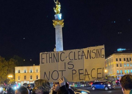 Թբիլիսիի կենտրոնում նա և ակցիայի մյուս մասնակիցները պաստառներ են պահել՝ «Էթնիկ զտումները խաղաղություն չէ» և «Ազատություն հայ բանտարկյալներին» գրություններով։